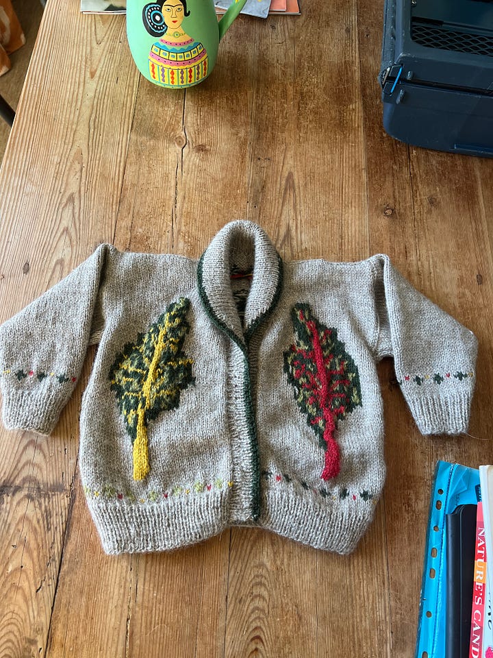 The pros of it being too cold and drizzly to want to go outside is I finished a recent knitting project. I have named it the chardigan, it’s a pattern I designed for a cardigan with chard on! This was my second intarsia (knitting technique using different colours) design project and definitely went a lot better than my first, a cassata jumper design which I learnt a lot from.