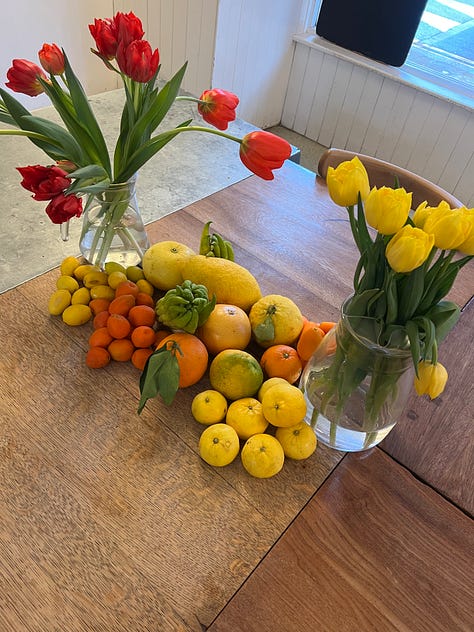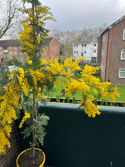 Things that have been joyful recently, are moments of sunshine to break up the rainy grey days. The week I got back from Australia I went out and bought myself a small mimosa tree for my balcony, I can see it from my kitchen and it has definitely been brightening up my days plus I can use it on cakes, far more cost effective than buying bunches. I had my annual citrus workshop on Sunday with some delightful students attending, we played with lots of fun zesty bits. The kumquat maxima from Todoli are really outstanding I can’t stop eating them, just as they are!