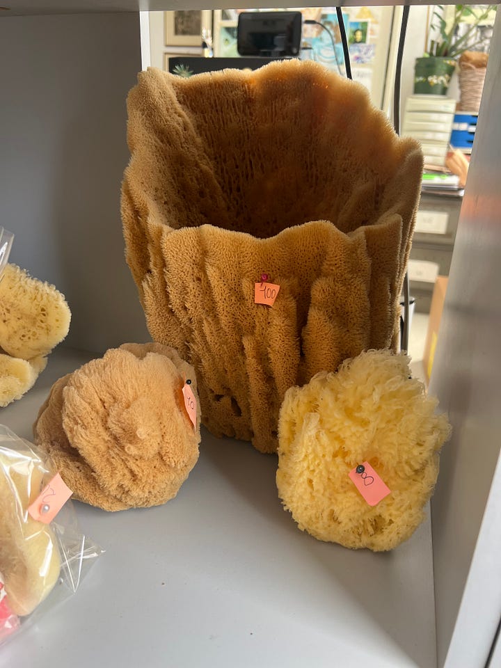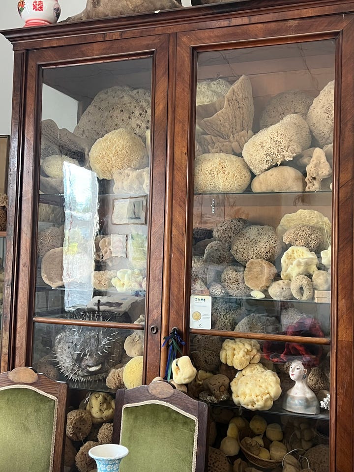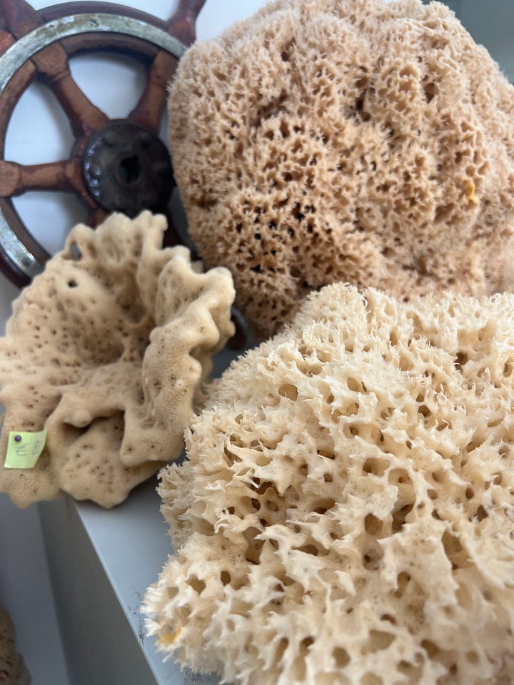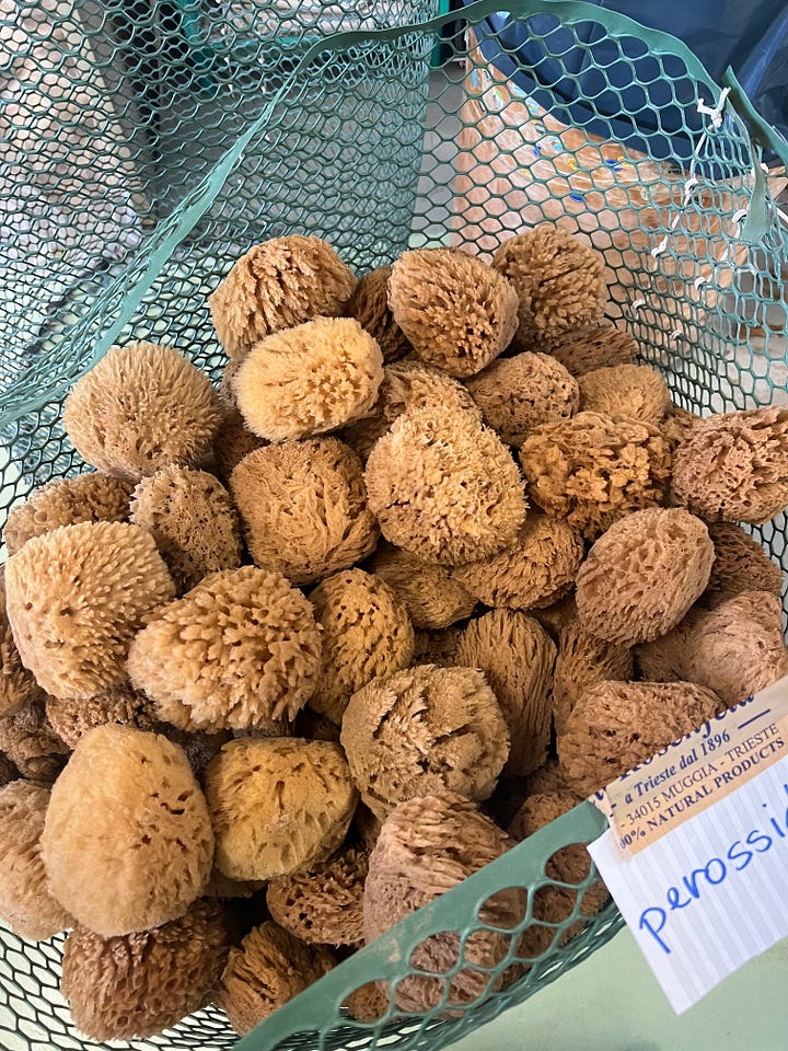 Right around the corner from the bakery is a sponge shop I was eager to visit. Not cake sponges: washing sponges! They have natural sea sponges in all shapes and sizes from many different seas and oceans, it was wondrous. These are living marine organisms, that are trimmed to give us sponges, imagine an underwater box hedge having a haircut.