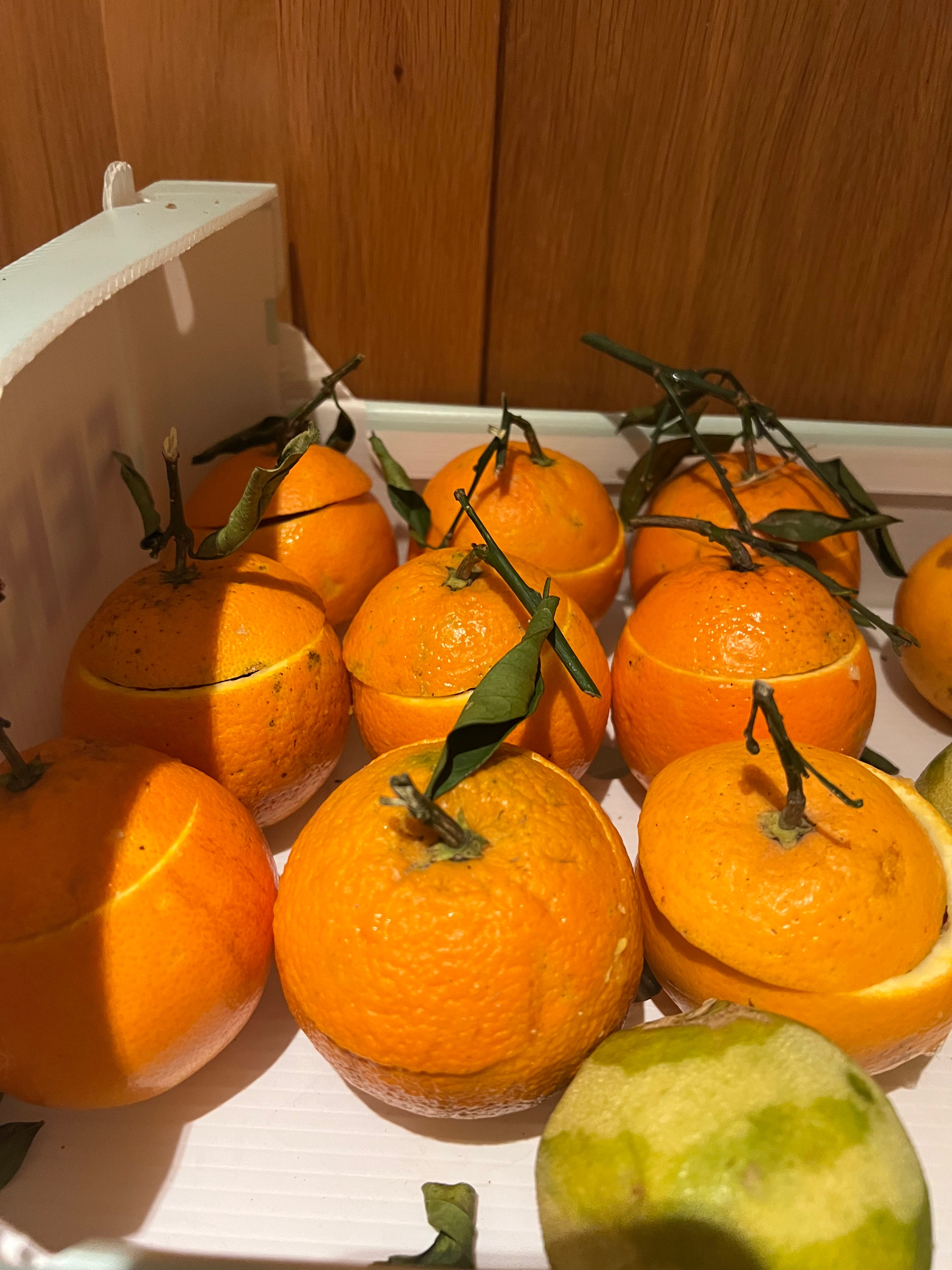 I first encountered citrus being used as a vessel at an Italian cousin’s birthday party when I was about 16, where they served orange ice cream in oranges and lemon ice cream in lemons. I was captivated by it, what an ingenious idea to make use of the whole fruit now you see quite a few modern interpretations of fruit filled with all sorts of desserts. But I believe it was a real dinner party favourite in the 60’s/70’s as a way to impress your guests, my Granny informed me she would regularly pull this one out.