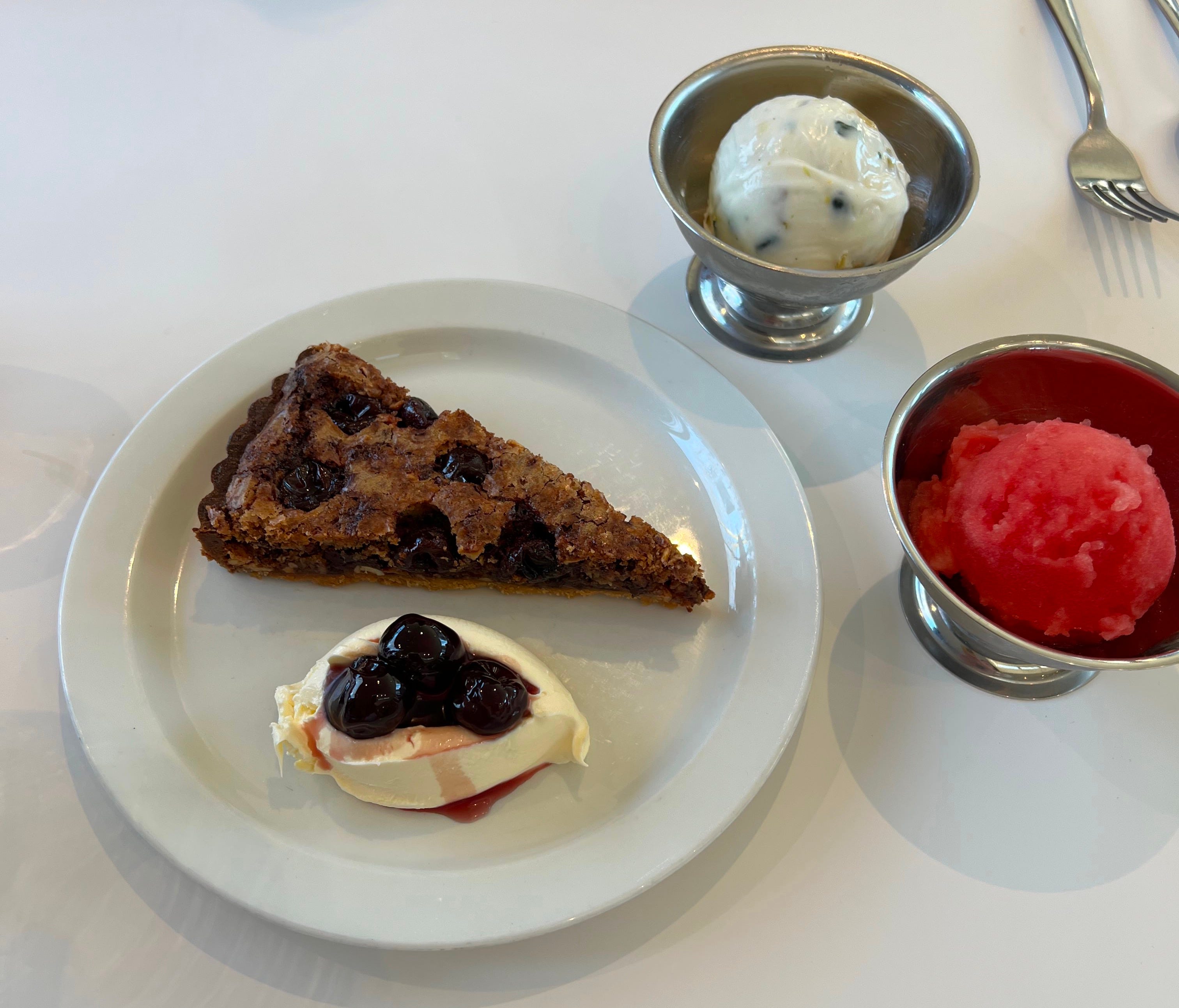 Rose and I did a bake sale together for the Arnold Circus Plant Sale back in Autumn. She was after a full time pastry position, as she got a sadly short stint at Lyles. I knew Alex (Jackson) who was leaving Leila’s was after a pastry chef so sent her in that direction and it seems to have worked out pretty well. Rose had made this divine ricotta, pistachio and candied Buddha’s hand ice cream which was perfectly balanced and soooo up my street.